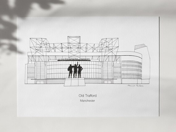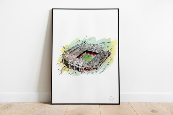 Old Trafford Illustration Print Manchester United Wall Etsy